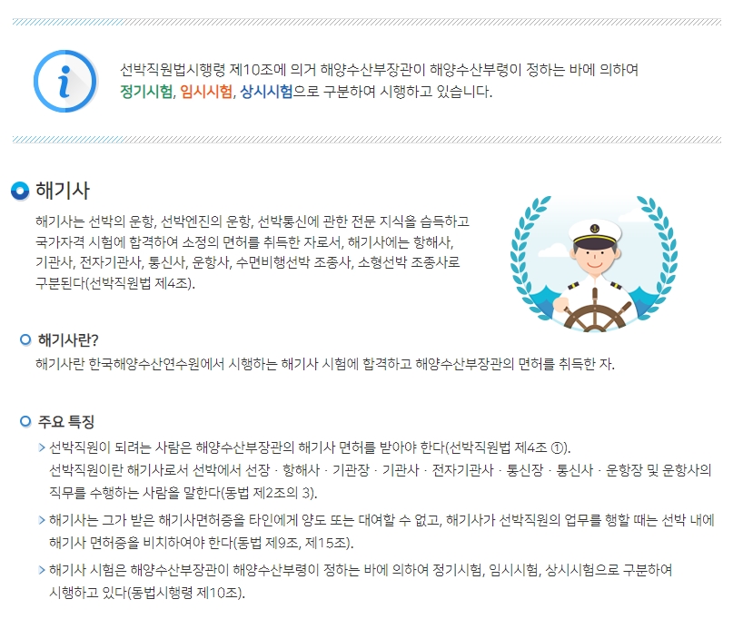 해기사 시험에 대해서 먼저 간단히 설명드립니다.