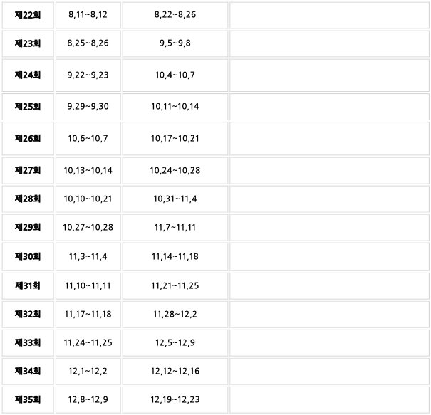 회차별 자세한 일정은 아래 사이트에서 확인 가능합니다.