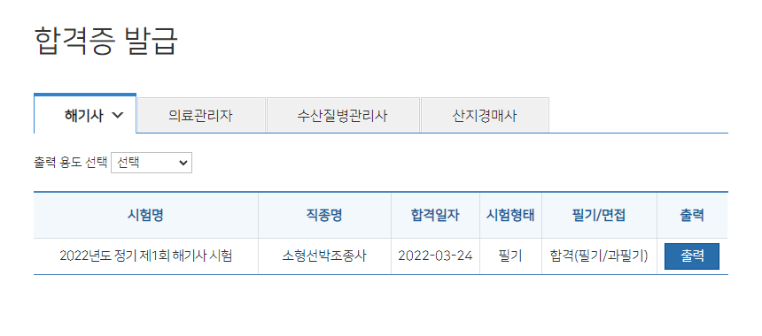 소형선박조종사도 합격 후 면허증을 반드시 발급받아야 합니다. 기간은 합격일로 부터 3년 이내에 지방해야수산청에서 받아야 하네요.